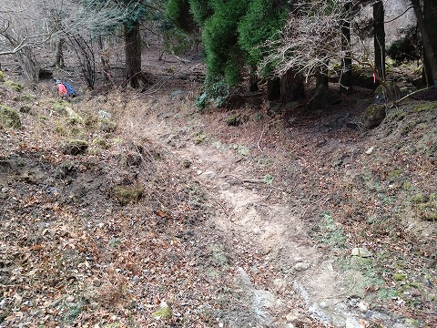 (8) 9時14分頃、本格的な登山道となります。標高672m。距離約2.4km。 |