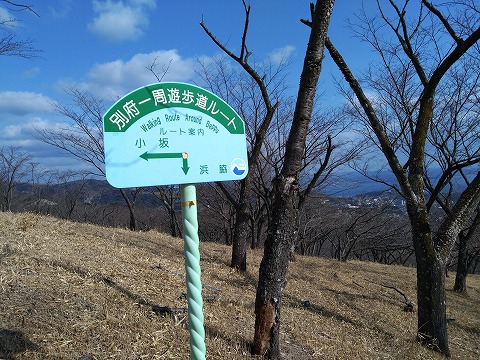 (16) 10時31分頃、麓まで下り(標高400m、距離約4.5km)しばらく行くと37分頃に案内標識があります。小坂方面に向かいます。ここからは緩やかなアップダウンが何度かあります。 |