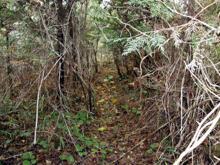 | (11) 中に入ると、はっきりと踏み跡があります。腰をかがめて進みます。 |