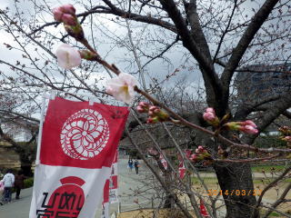 | (特1) 前日の27日に姫路城に行きました。丁度、素屋根(工事用建屋)の鉄骨解体が始まり、今しか見られない姿でした。8月頃には再生したは白鷺の城が完全に姿を見せるようです。 | (特2) 城内の桜はヤット開花です。この日福岡市の舞鶴公園は満開、とメールがありました。 | |