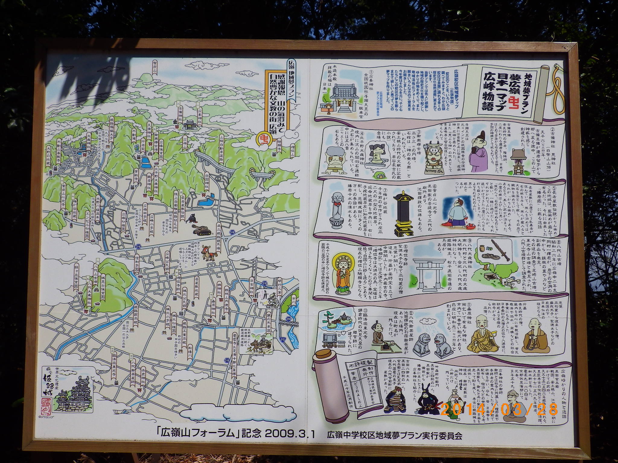| (27) 約135分で廣峯神社と随願寺との分岐点です。神社は目の前です。廣峯神社までの距離約7.6Kmです。神社の標高約260mです。 官兵衛の祖父重隆は廣峯神社に参詣。御師・井口大夫から黒田秘伝の目薬を依頼され、ほどなく艶福長者になった。と資料に記されています。 |