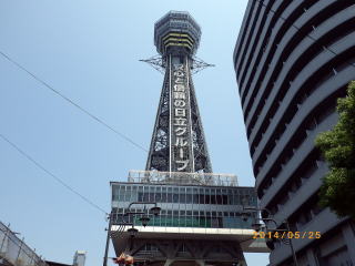 | (3) こちらは103mの通天閣です。「キタ」「ミナミ」に並ぶ、「ど・ミナミ」にある大阪人の心のシンボル、と言われています。その@です。 | (4) そのAです。クリックで拡大。 | |