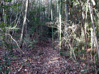 | (7) そして雑木林となります。これの繰り返しです。 | (8) 尾根近くになると、桧・杉の林です。 | |