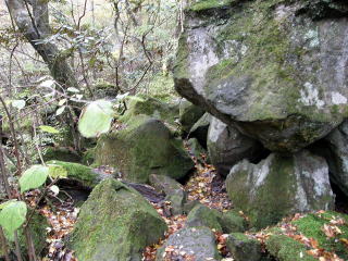 (31) 午後からは霧もだいぶ晴れ、周囲の山々の紅葉もかなりはっきりと見えます。風穴手前です。