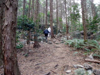 (7) 登山道は整備されています。途中所々で分岐していますが、急坂コース・平坦コース、或いは谷あいを登るコース・尾根を登るコース等に分かれていて、途中で合流します。 |