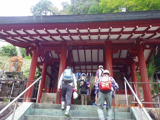 | (3) 階段を上り山門から本堂に向かい、安全登山を誓願し、10時頃出発です。 |