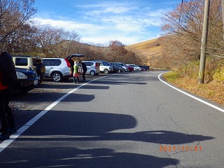 (2) 道路に沿った広い駐車場も半分程度埋まっています。 |