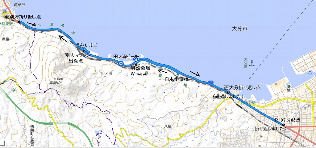 | (5) 高崎山・うみたまご前がマラソンの出発点です。別府方面に走ります。 |