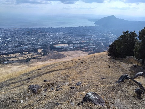 | (15) 中央に自衛隊駐屯地、市街地、高崎山。麓まで眺望が楽しめます。クリックで拡大 |